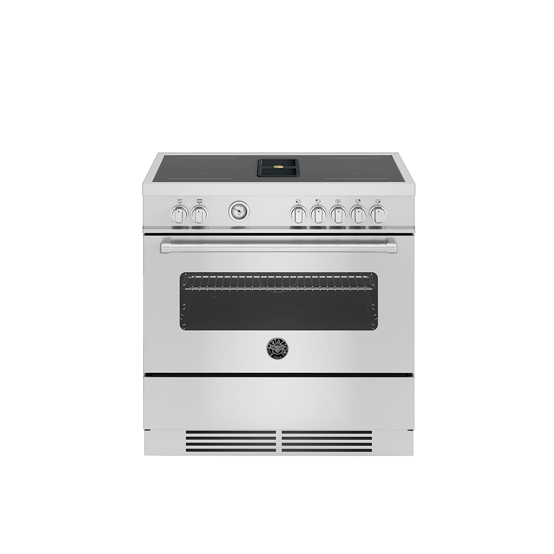 Wolnostojąca kuchnia Air-Tec 90 cm łączy w sobie trzy wysokowydajne urządzenia w jednym. Do wzornictwa i technologii kuchenek z serii Master dodano wydajny, zintegrowany system wyciągu.